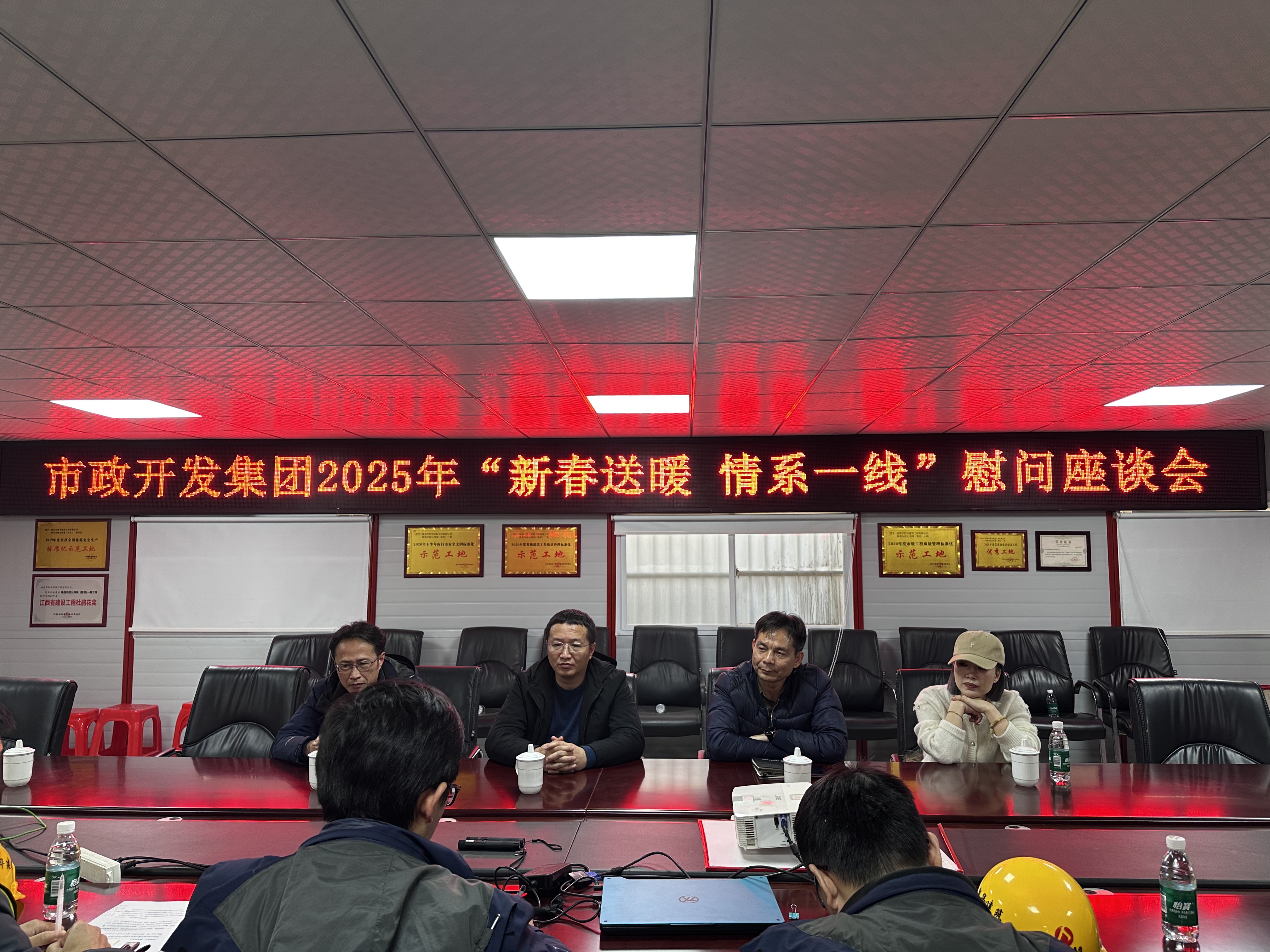 隨后在項(xiàng)目部會議室與職工們展開座談交流,聽取了項(xiàng)目工程進(jìn)展、施工組織安排、職工生活等情況匯報(bào)。王海龍表示:過去一年大家扎根工地、攻堅(jiān)克難,為項(xiàng)目建設(shè)立下功勞,公司發(fā)展與工程推進(jìn)離不開大家,叮囑項(xiàng)目部要做好防寒保暖措施,加強(qiáng)冬季施工現(xiàn)場的安全管理工作,讓職工安心過年,使項(xiàng)目平穩(wěn)運(yùn)行。