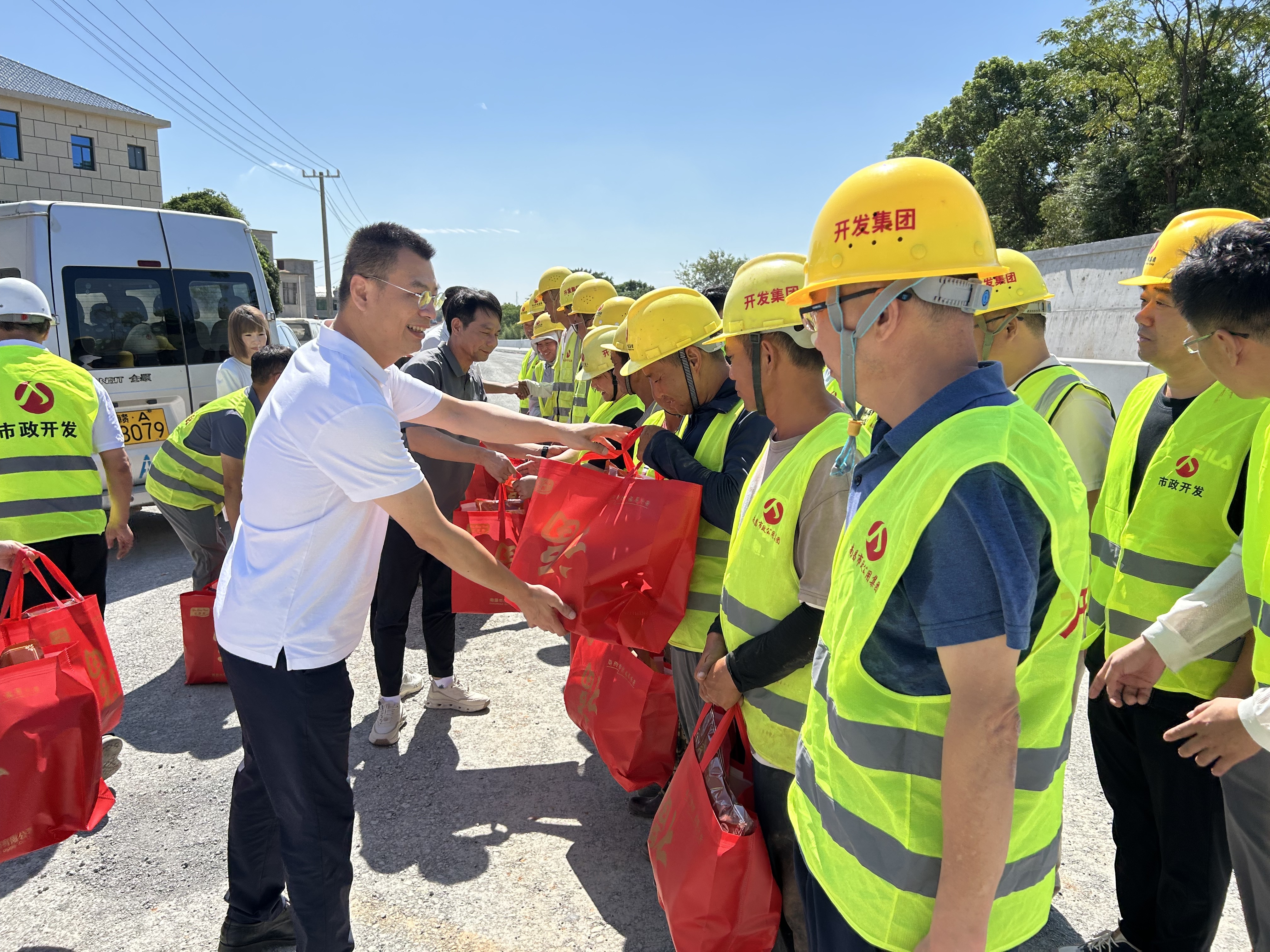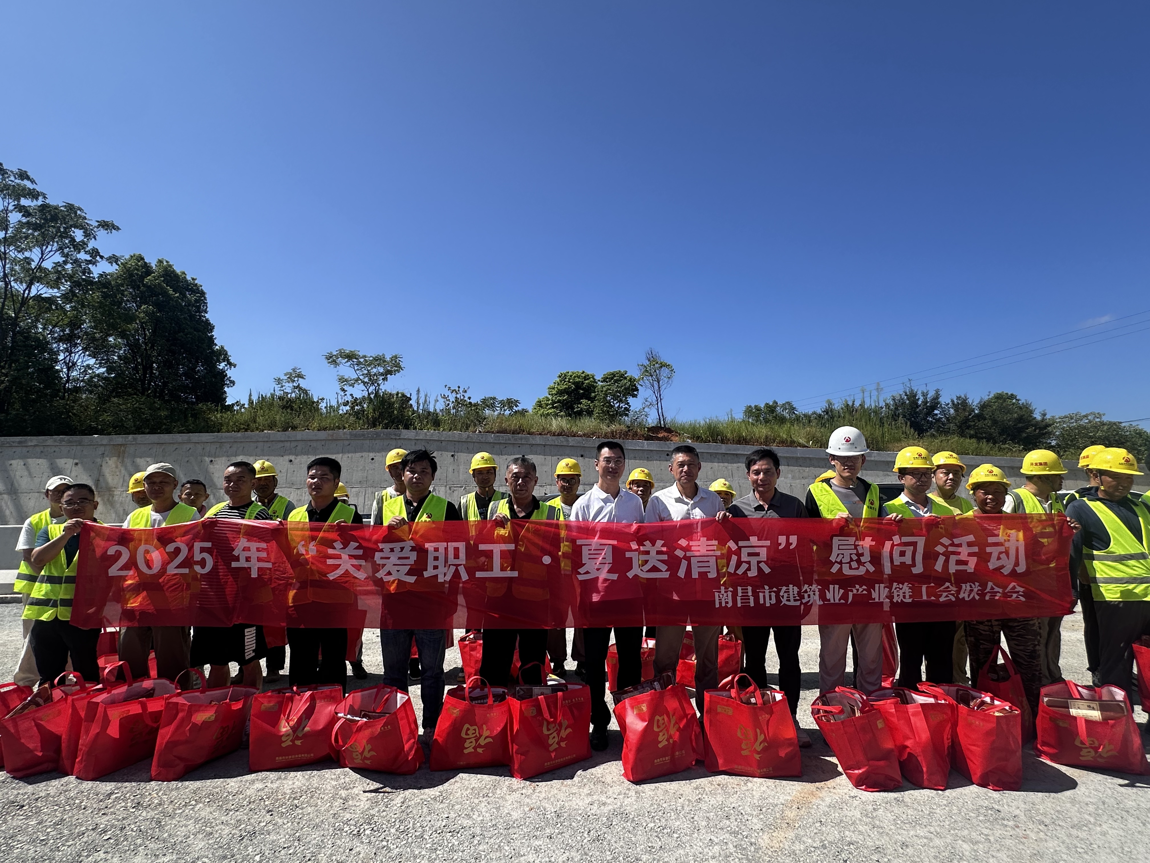 8月8日上午,南昌市建筑業(yè)產(chǎn)業(yè)鏈工會(huì)聯(lián)合會(huì)副主席申緒兵、副主席黃歆帶領(lǐng)慰問組,前往南昌市云翔大道項(xiàng)目施工現(xiàn)場,為高溫下堅(jiān)守崗位的一線職工送去清涼物資與組織關(guān)懷。南昌市政開發(fā)集團(tuán)黨委委員、工會(huì)主席姜件平陪同慰問。